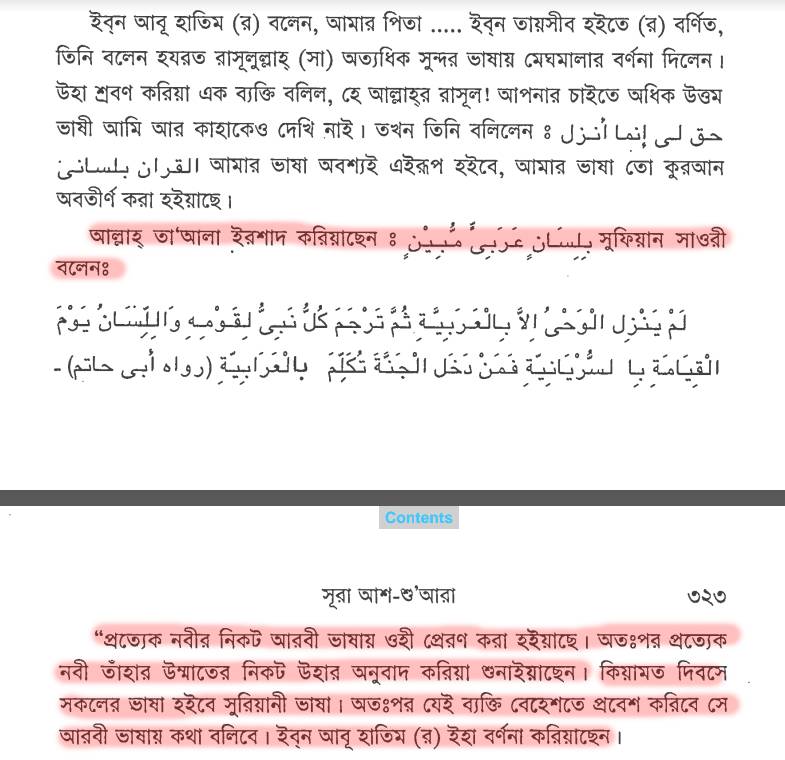 এই তথ্য থেকে বোঝা যায়, আল্লাহ এবং তার ফেরেশতাগণ আরবি ভাষাতেই কথাবার্তা বলেন। কিয়ামতের ময়দানে সকলের ভাষা হবে সুরিয়ানী ভাষা। তবে জান্নাতে তারা আরবিতেই কথাবার্তা বলবে!